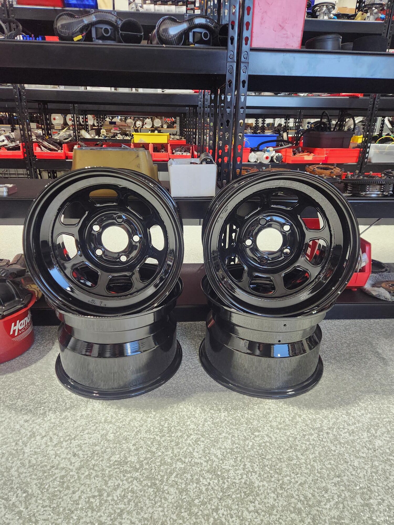 4 USED AERO NASCAR 5X5 RIM SET / FRESH POWDER COAT